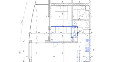 The apartment presents a bright living room with a modern open plan kitchen, extended by a terrace accommodating a dining table and long chairs. It is home to one main bedroom and a second room that can be used as a kid’s bedroom opening as well onto the terrace.