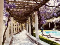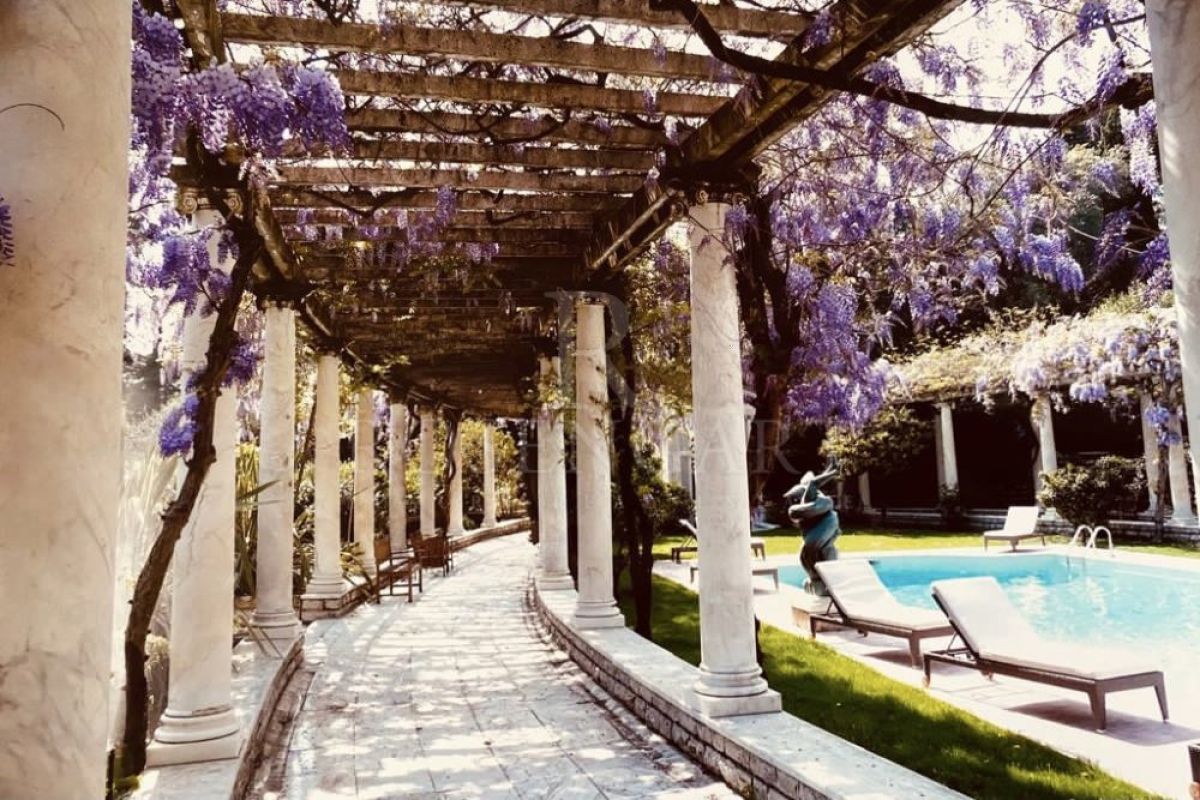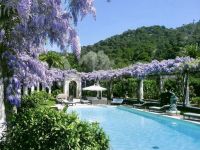 An oval ornamental basin of over 30m surrounded by a portico covered with flowers created in 1910 has been converted into a modern heated swimming pool with a wonderful view over the surrounding hills with the sea in the distance.