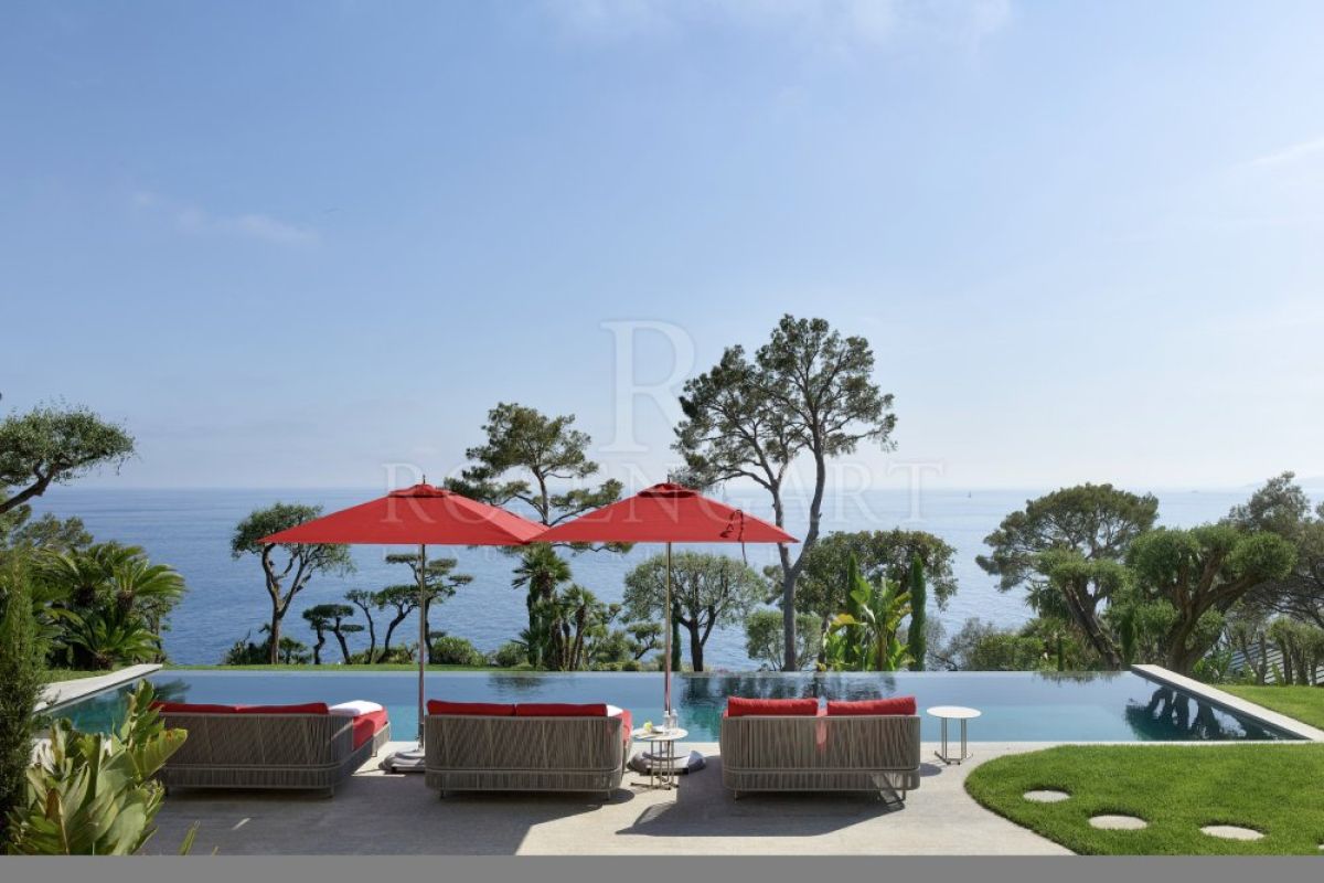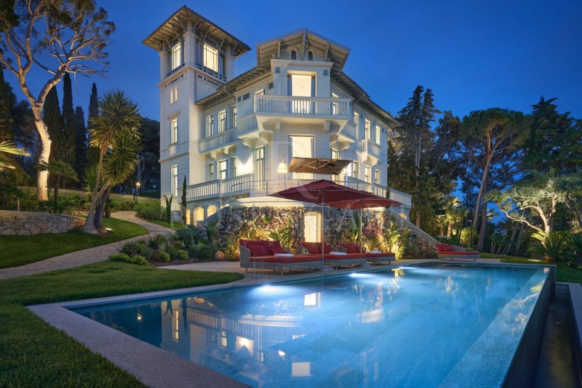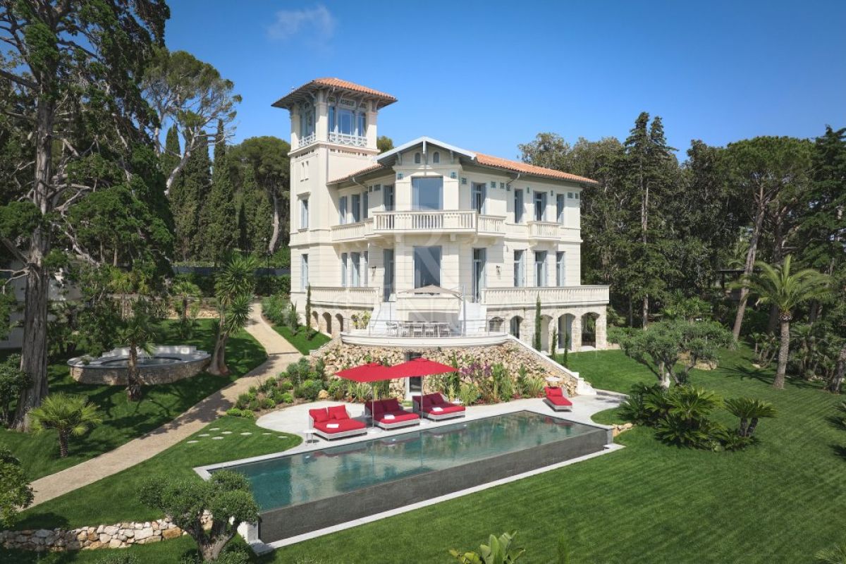 The property stands in the middle of luxuriant vegetation, planted with Centennial trees, rare species, a vast lawn plunging with paved paths leading to the sea, and a 14m heated swimming pool.