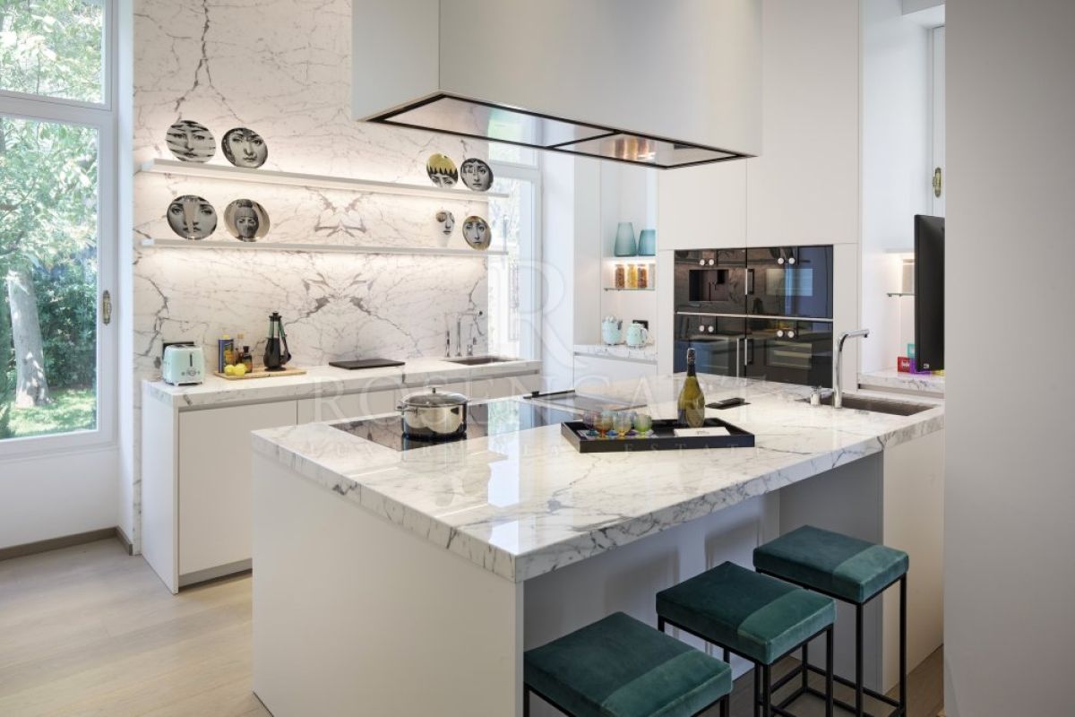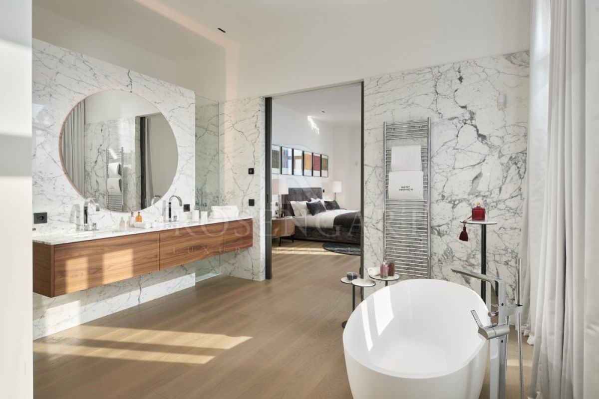 In tribute to its historical heritage from the beginning of the century, the property presents a Belle Epoque architecture with 3,4m ceiling height, whilst incorporating today’s amenities. Benefiting from a total renovation and refurbishment carried out to the highest standard, the interior embraces faultless interior decor with top-quality home automation.