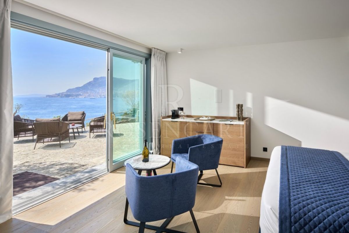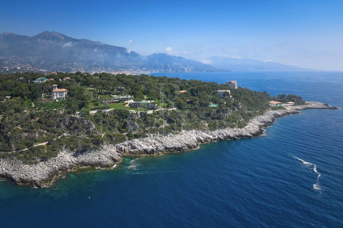 Situated in a private and secured domain, on the pictoresque Cap Martin, 10 minutes away from Monaco, the Belle Epoque property benefits from an unrivaled situation on the shoreline facing due South, and offering unimpeded view of the Principality and the radiant Mediterranean sea.