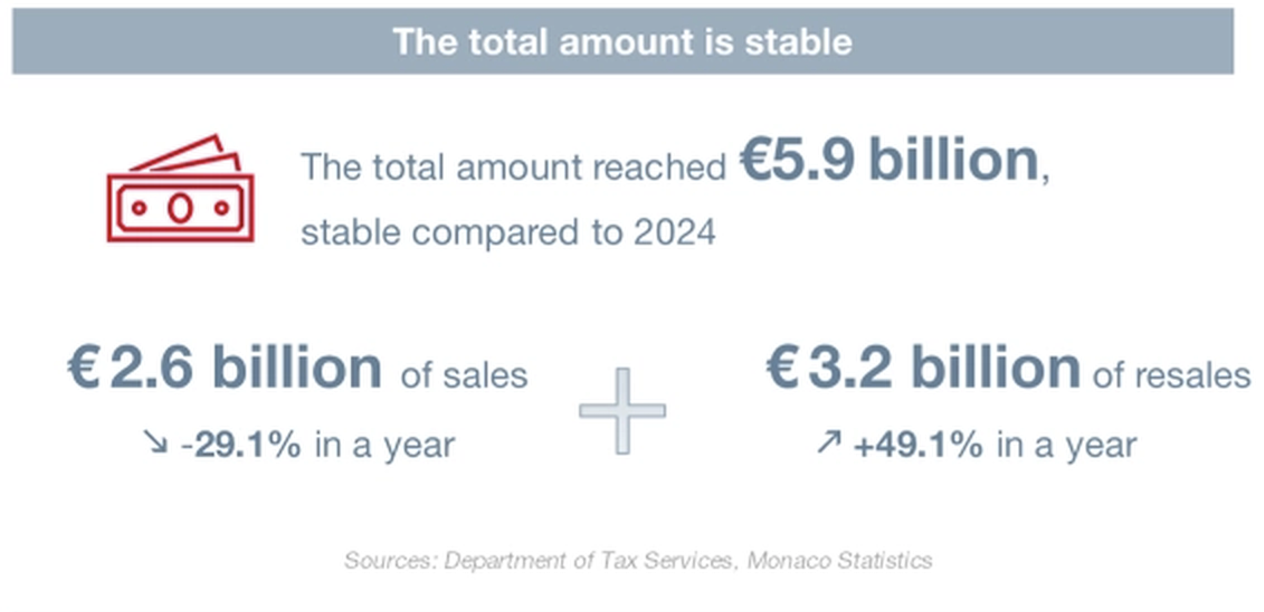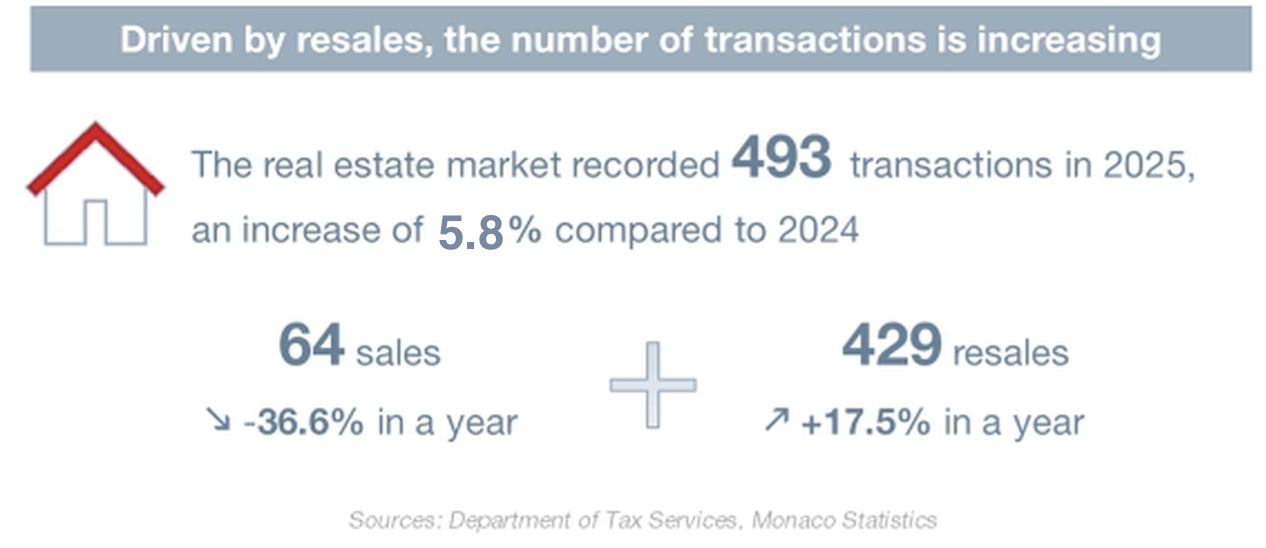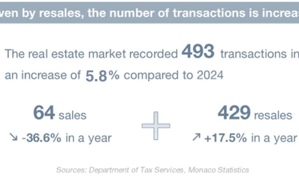 Monaco’s residential property market remained resilient in 2025, with transaction volumes rising despite overall deal values holding steady at near-record levels. According to the latest figures, the Principality recorded 493 transactions over the year, an increase of 5.8% compared to 2024, while the combined value of sales and resales remained stable at €5.9 billion.