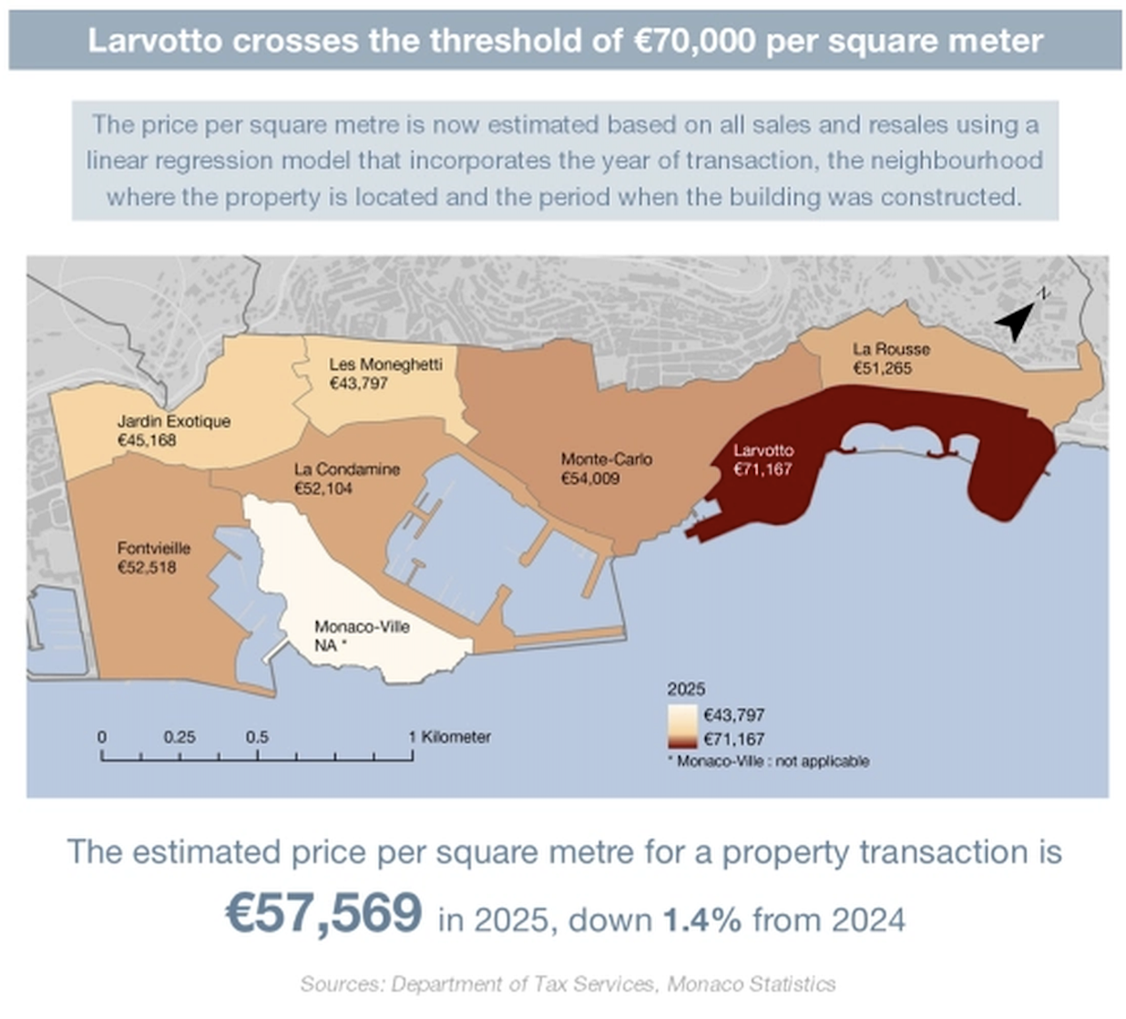 Behind this headline figure, however, lies a wide range of values depending on the district, from the seafront Larvotto to areas such as Fontvieille.