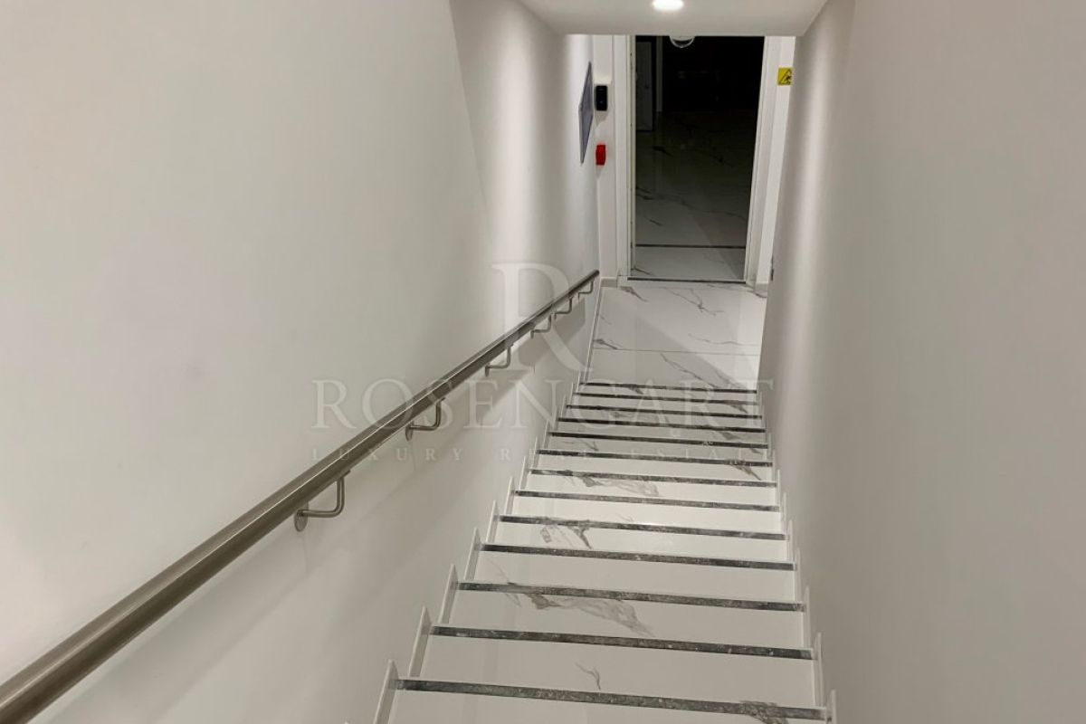 The office offers a nice open space, 2 additional offices room on the other floor, a storage room including a safe, and a common space with kitchen and bathroom for delightful breaks.