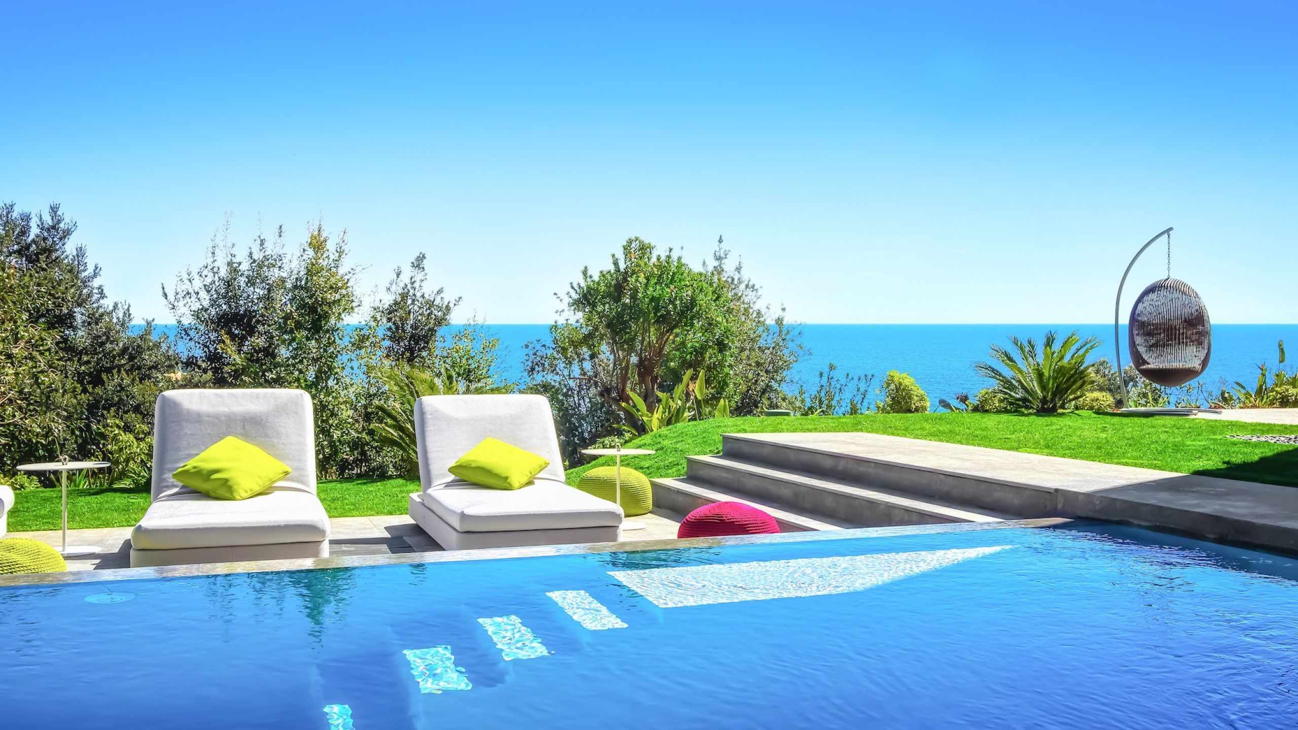 The infinity pool, facing the immensity blue waters of the mediterranean sea, reflects the same level of expections of the house: it is granted of a unique underwater music system.