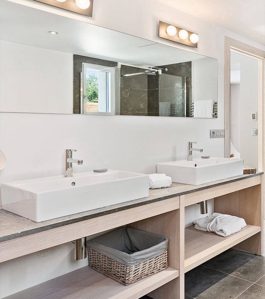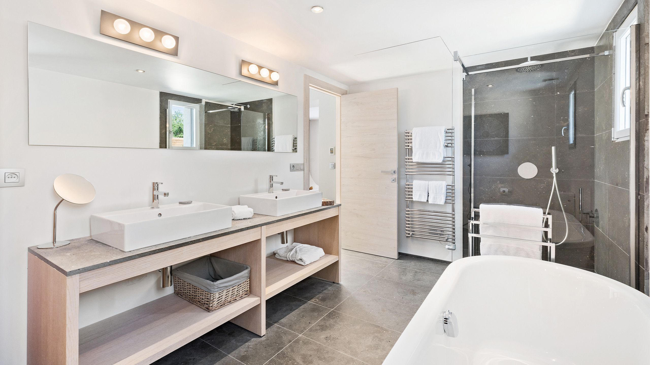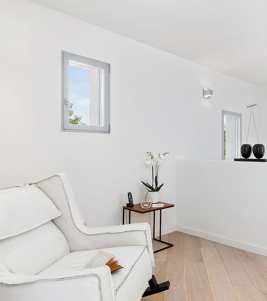 The large pivoted entrance door opens onto the living area comprised of three modules: a reception area, a lounge with a designer fireplace in which to languish before the enchanting view, the dining area and a large open plan kitchen with laundry room, a model of elegant finishes.