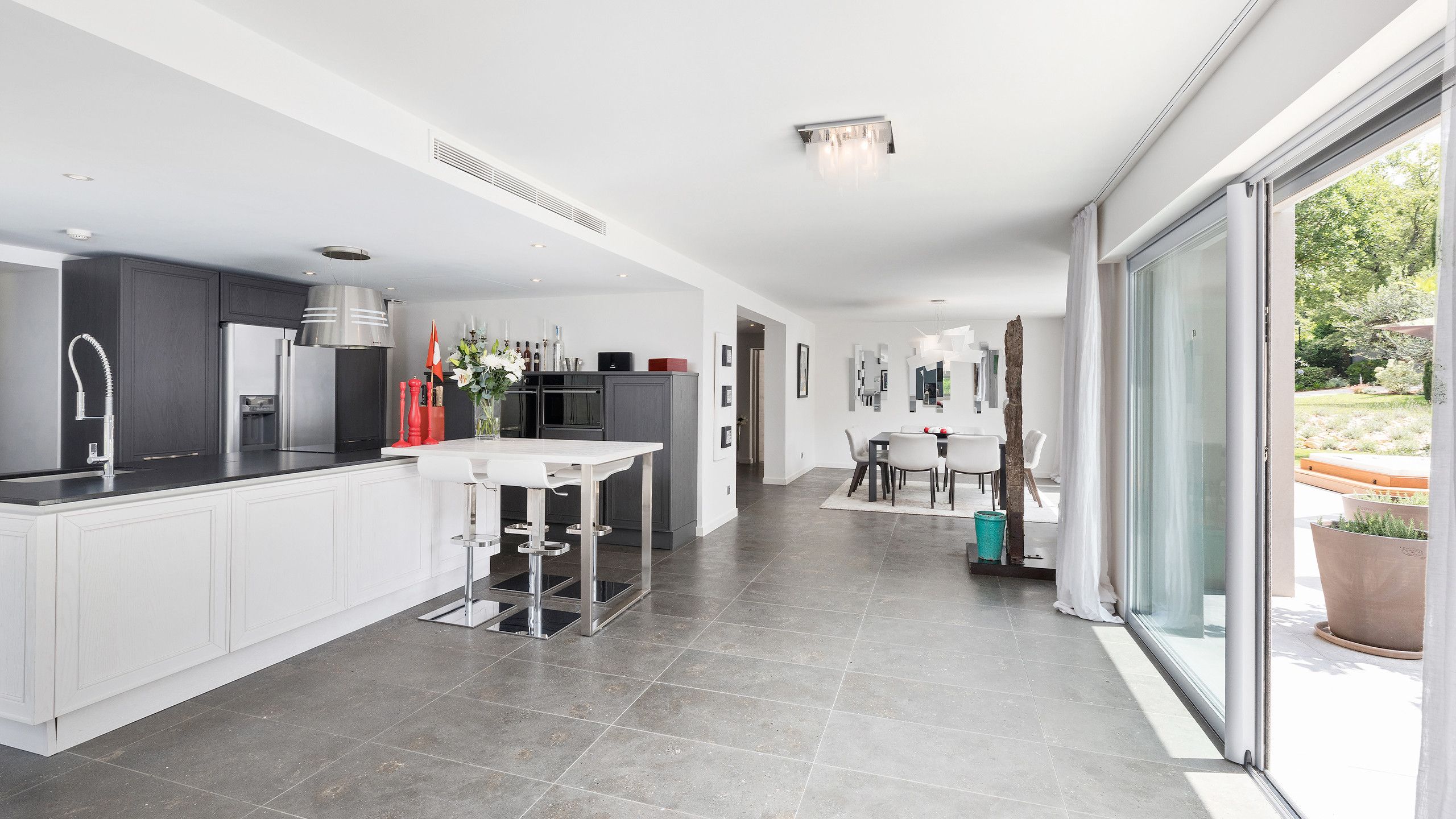 The house is a seamless indoor outdoor living experience, offering all main rooms opening onto the landscape garden.