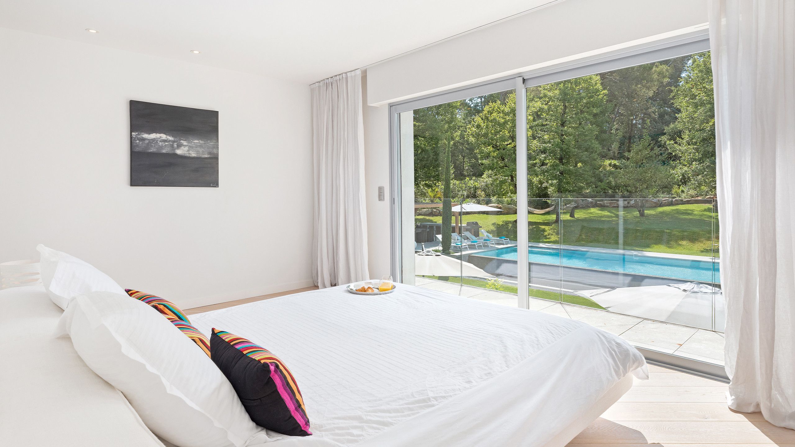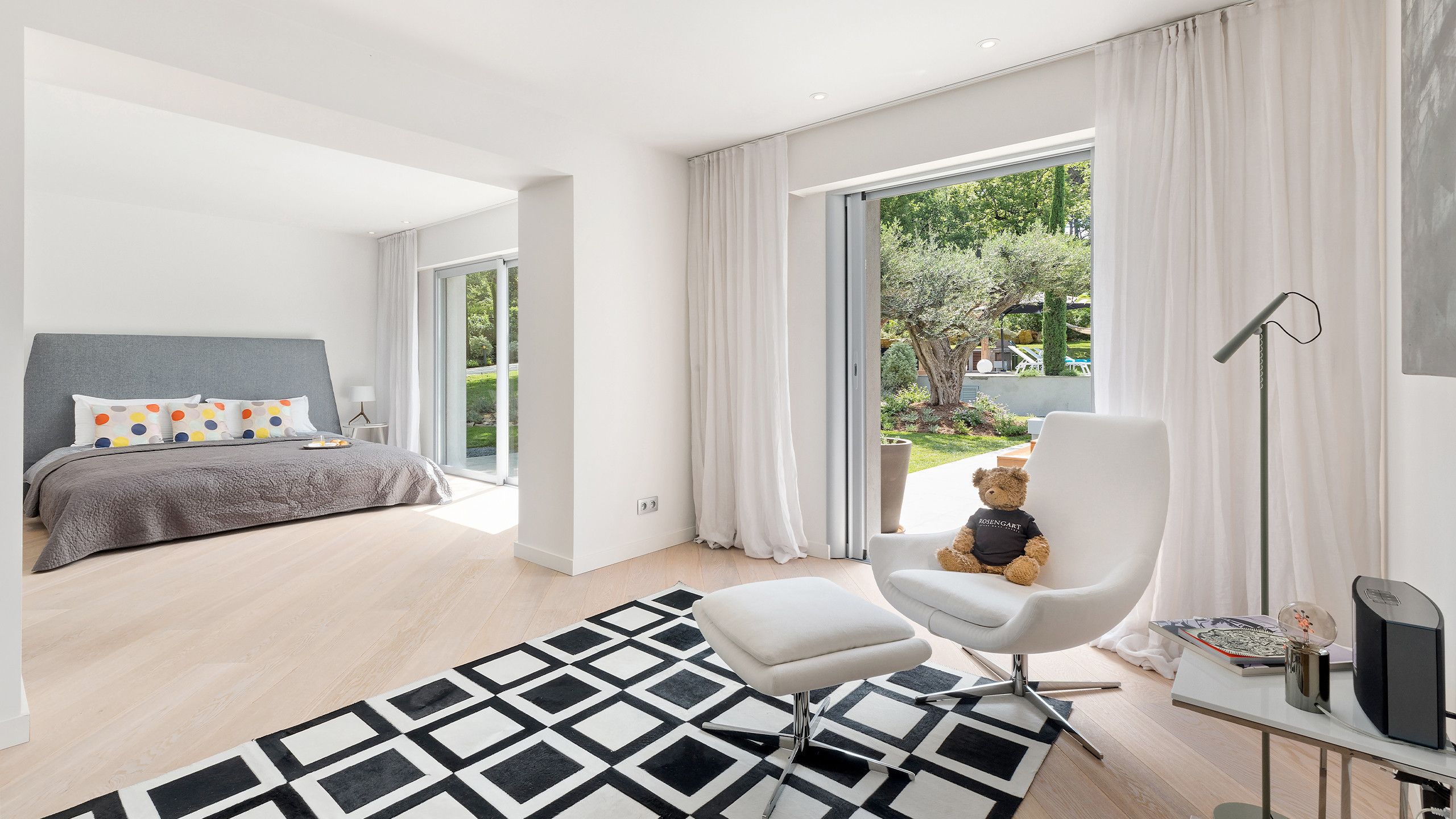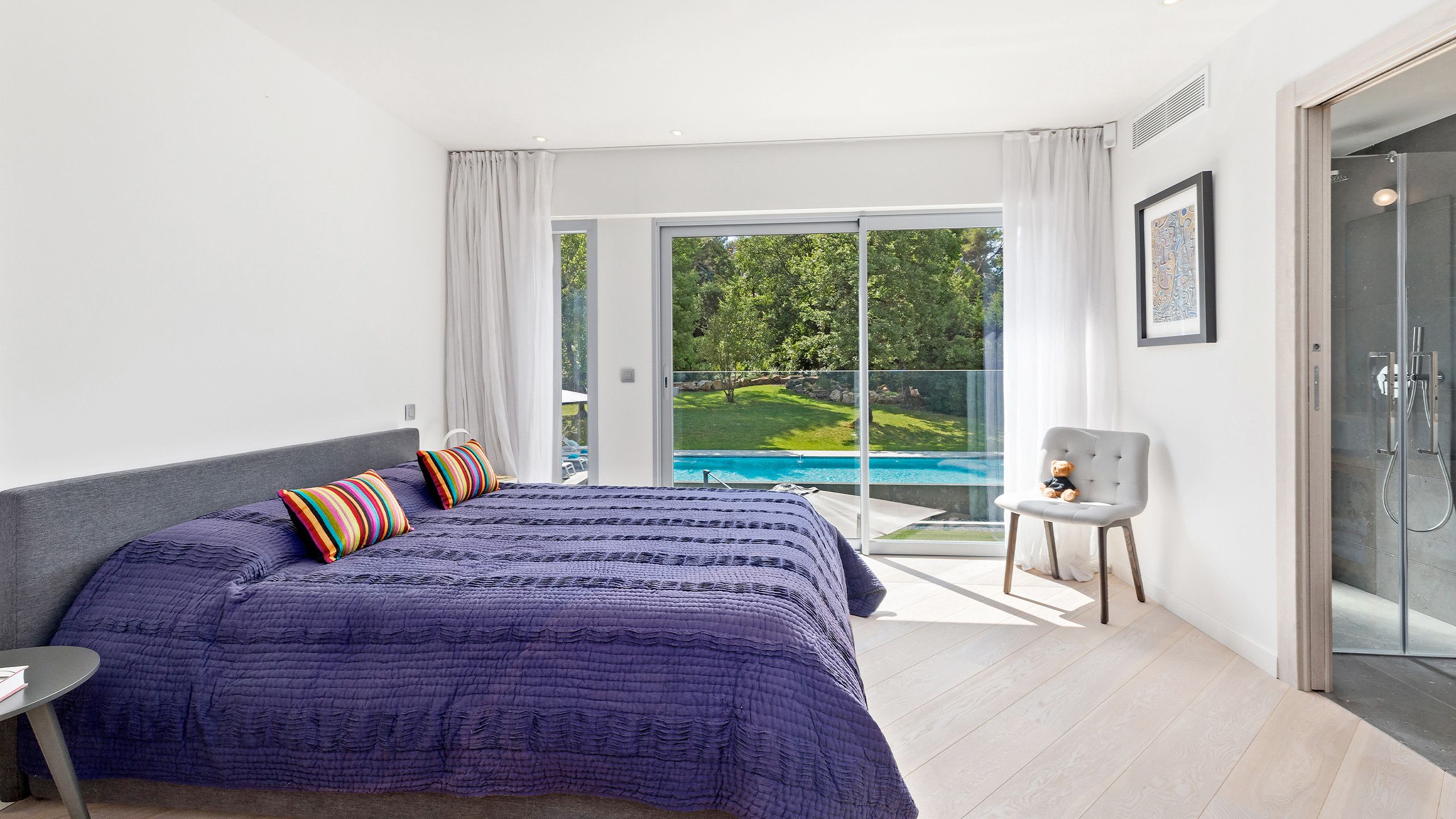 The main hall is more discreet, leading onto the Master apartment comprising a living room with office, a large walk-in closet, a bedroom and a large bathroom. Once again, all of these main areas overlook the park and pool.